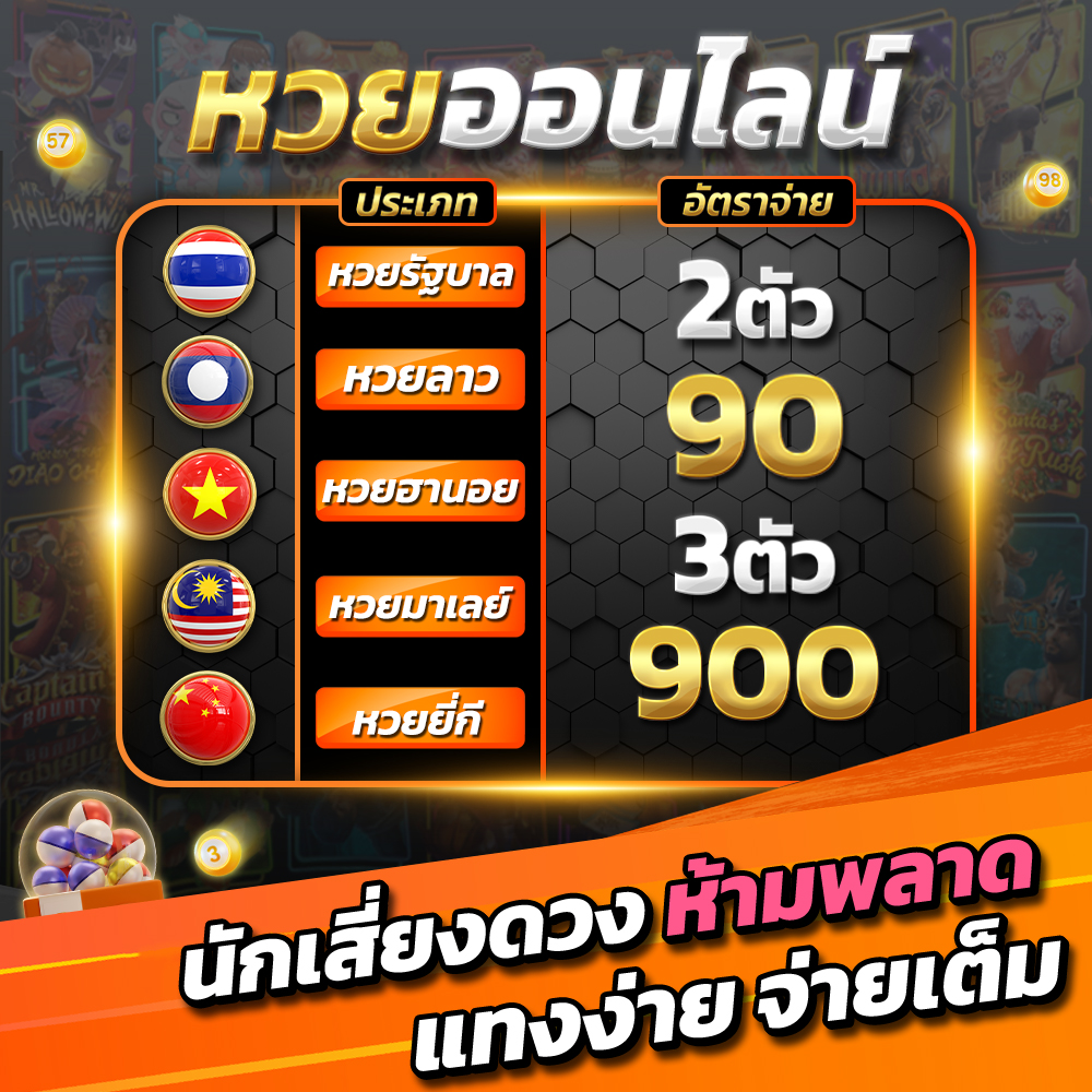 สำหรับคอหวยก็ไม่ต้องกังวล เพราะที่นี่มีหวยให้เลือกแทงมากมาย ทั้งหวยรัฐบาลไทย หวยลาว หวยฮานอย และหวยยี่กีที่ออกรางวัลทุก 15 นาที เรียกได้ว่าลุ้นรวยกันได้ตลอดทั้งวัน ส่วนแฟนกีฬาก็มีให้เดิมพันครบทุกลีกดัง ทั้งฟุตบอล บาสเกตบอล เทนนิส มวย และอื่นๆ อีกมากมาย
